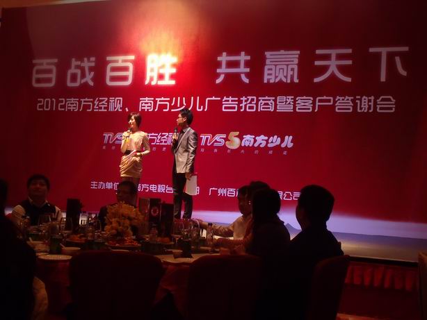 ![]() “百战百胜,共赢天下”2012年南方经视、南方少儿广告招商暨客户答谢会现场