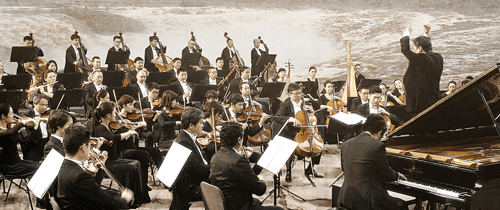 作为一部音乐艺术片,《黄河》全程再现了郎朗和中国爱乐乐团的交响乐演奏,但与在现场表演最大的不同就是,在观看《黄河》时,观众即使坐在固定的位子上,依然能够从银幕上欣赏到导演拍摄出交响乐各个角度的演奏画面。演唱者的表情、演奏者弹奏乐器时的细节以及穿插剪接的历史画面,使整个交响乐表演不再拘泥于静态的表象,而具有了动态的故事的框架和灵魂。观众坐在影院中欣赏《黄河》,也不再只是简单地去聆听交响乐的优雅,即使只能用到10%的耳力,却仍然可以用眼睛去观赏,降低了人们对高雅音乐的欣赏门槛。